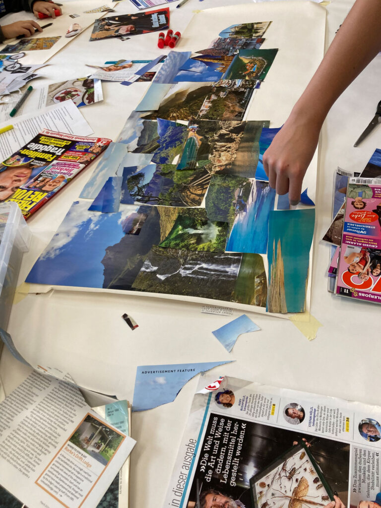 Die entstandenen Verträge wurden zu Collagen verarbeitet und mit 360‑Grad‑Fotos als Vorlage für die Programmierung im Programm cospace genutzt. In Kleingruppen programmierte jedes Team ihre Vision einer gerechten Welt als virtuelle 3D‑Umgebung – ein immersives Experiment, um abstrakte Prinzipien erlebbar zu machen.